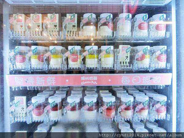 看大家好認真地盯著販賣機裡的奶酪看